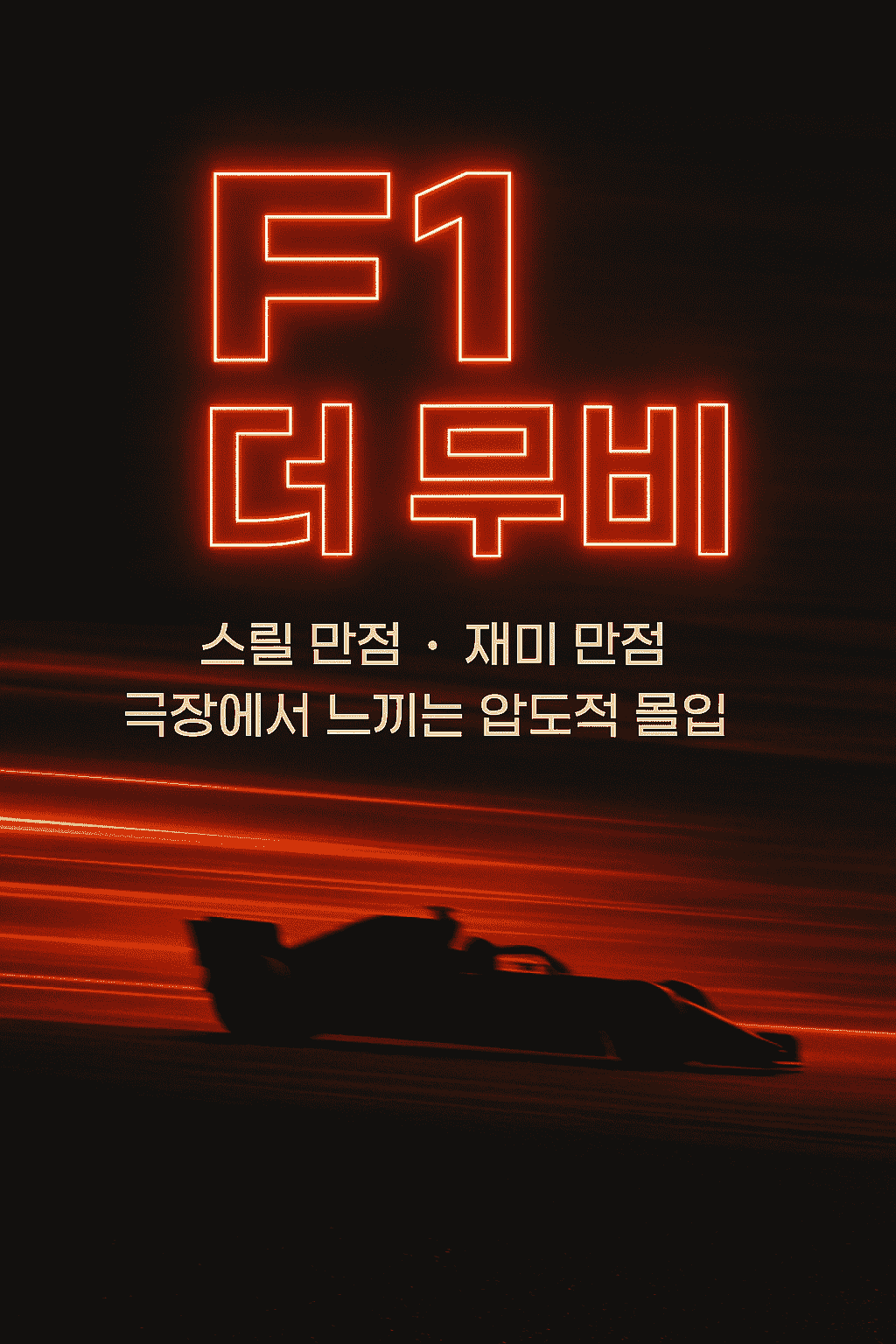 정리하면, F1 더 무비는 화면과 소리를 넘어 신체 감각과 감정의 파동까지 설계된 작품입니다. 그래서 극장에서 봤을 때 비로소 100퍼센트 가까운 체감이 가능합니다. 스토리 이해 이상의 것을 기대한다면, 가장 큰 스크린과 가장 좋은 사운드로 즐기는 관람이 답입니다.